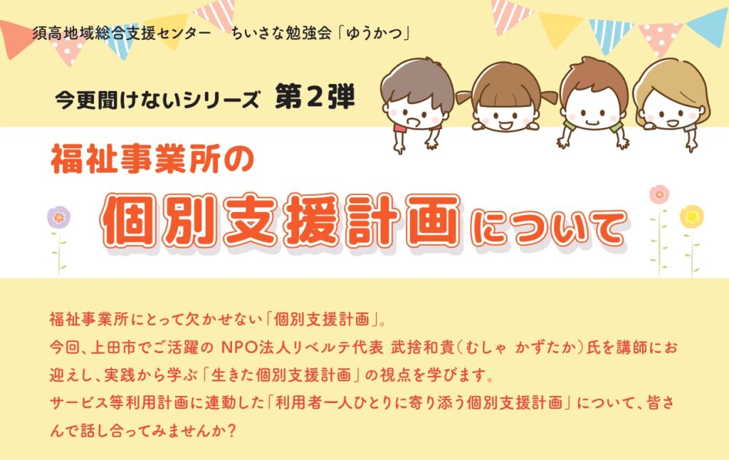 ちいさな勉強会「ゆうかつ」は、NPO法人須高地域総合支援センター主催の、地域の人たち向けの勉強会です。